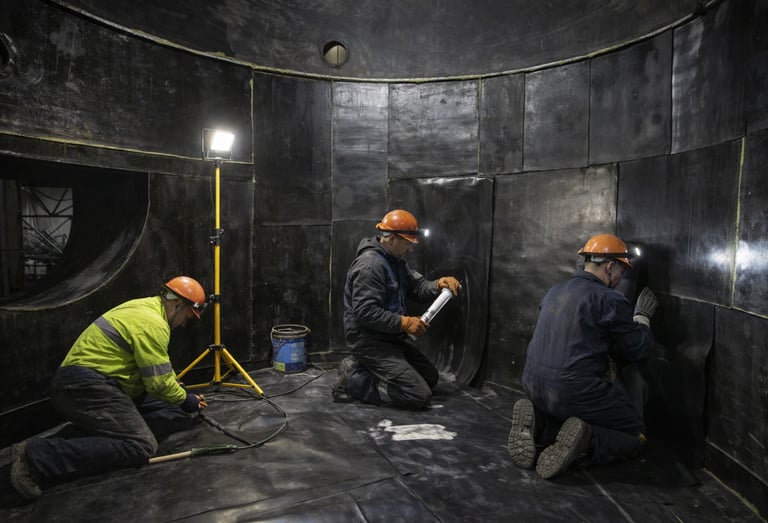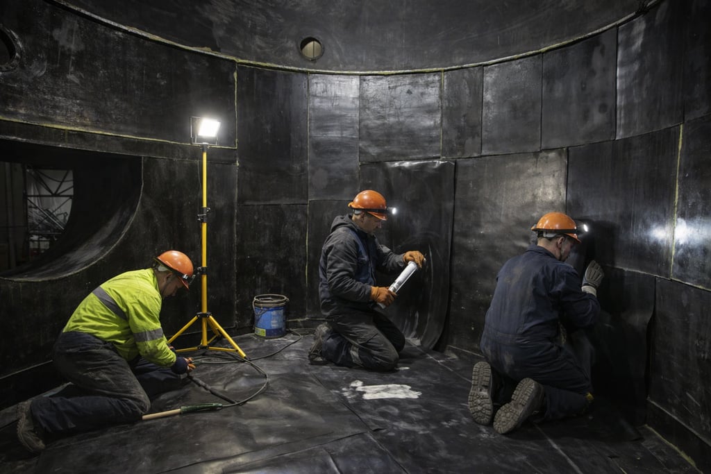 Stosujemy powłoki natryskowe na bazie żywic winyloestrowych, wykładziny gumowe oraz laminaty winyloestrowe. Dobór technologii zależy od rodzaju medium, temperatury pracy i konstrukcji chronionego obiektu.