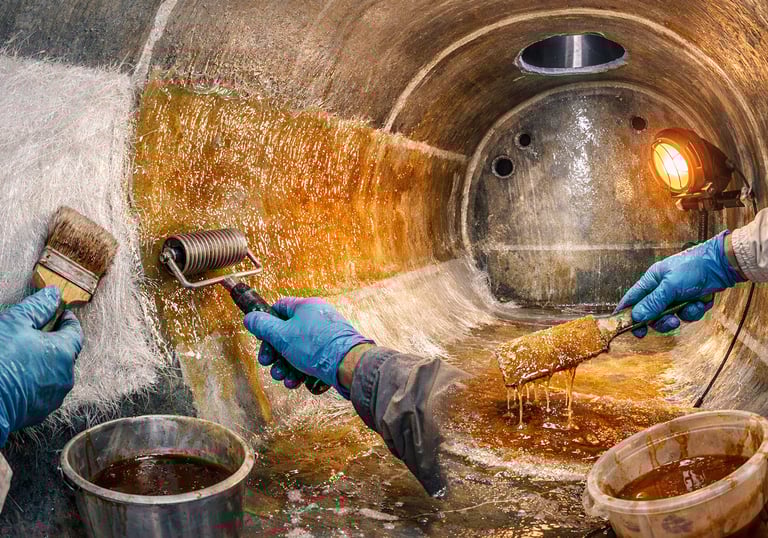 Nasze laminaty poliestrowe oraz winyloestrowe chronią zbiorniki technologiczne i studnie.